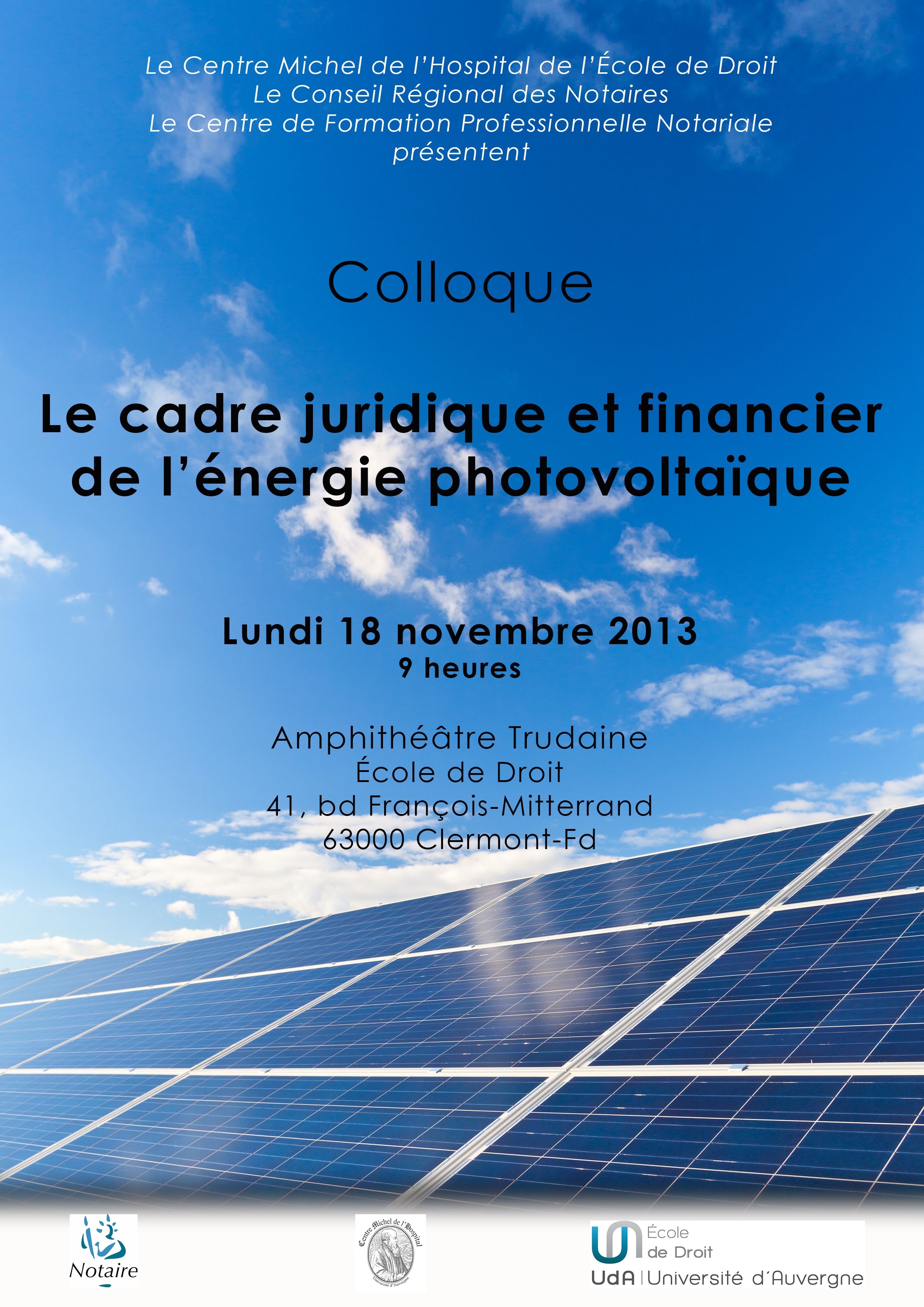 Colloque "Le cadre juridique et financier de l'énergie photovoltaïque"