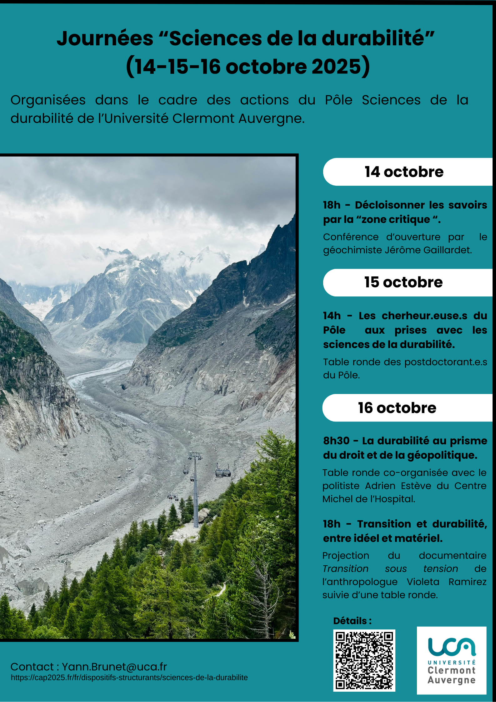 Dans le cadre des Journées "Sciences de la durabilité" de l'UCA, Pôle Sciences de la durabilité, du 14 au 16 octobre 2025